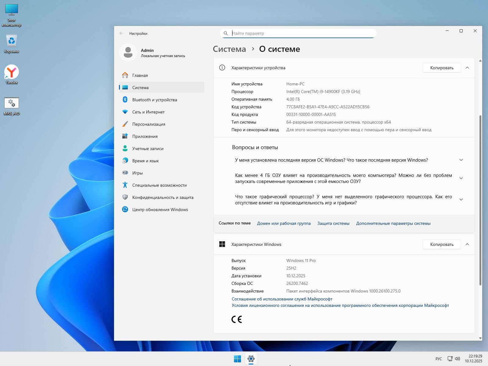 Очередная быстрая и легкая сборка Windows 11 Pro/Enterprise 25H2 64 бит от известного всем автора OneSmiLe. Как всегда, в системах нет ничего лишнего – исключительно необходимые для стабильной и комфортной работы компоненты. При необходимости обе редакции можно устанавливать на старое железо, но они также отлично подходят и на современные геймерские компы. Помимо удаления и отключения снижающего производительность хлама, автор поработал над повышением частоты кадров, что позволяет играть на полной графике, при условии, что она поддерживается компом. Кроме того, применены настройки энергосбережения для максимально эффективного использования аппаратных ресурсов, в частности, видеокарты. Интегрирован пакет накопительных обновлений, предназначенный для снижения риска взлома. Например, устранены 3 известные уязвимости нулевого дня. Также апдейты позволили исправить ряд функциональных ошибок. Если раньше при использовании опции Спросить Копилота, не всегда включался режим Click to Do, то теперь эта проблема пофиксена. Намного быстрее определяются USB-устройства, независимо от того, будет это жесткий диск или флешка. После установки вам не потребуется выносить ярлыки компьютера и корзины на рабочий стол – все происходит автоматически. Добавлены программы 7-Zip и WinRAR. Системы могут открывать некоторые архивы, но эти проги позволят создавать или распаковывать любые архивы. Скачать торрент Windows 11 Pro/Enterprise x64 легкие версии на русском можно вместе с Яндекс браузером. Он устанавливается вместе с системой. Этот обозреватель не просто обеспечивает комфортный и быстрый веб-серфинг, но и содержит голосовую помощницу Алису, а также несколько ИИ-ассистентов.