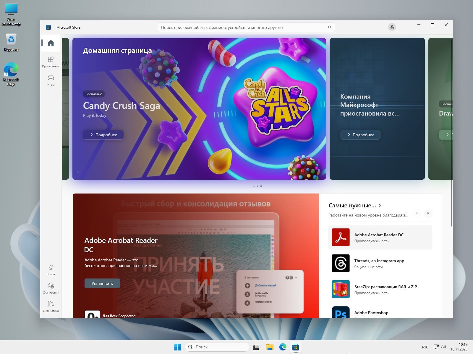 • Набор дополнительных игр, а также предустановленные приложения. Занимают много места и мешают нормальной работе с компом. Постоянно создают дополнительные фоновые процессы.