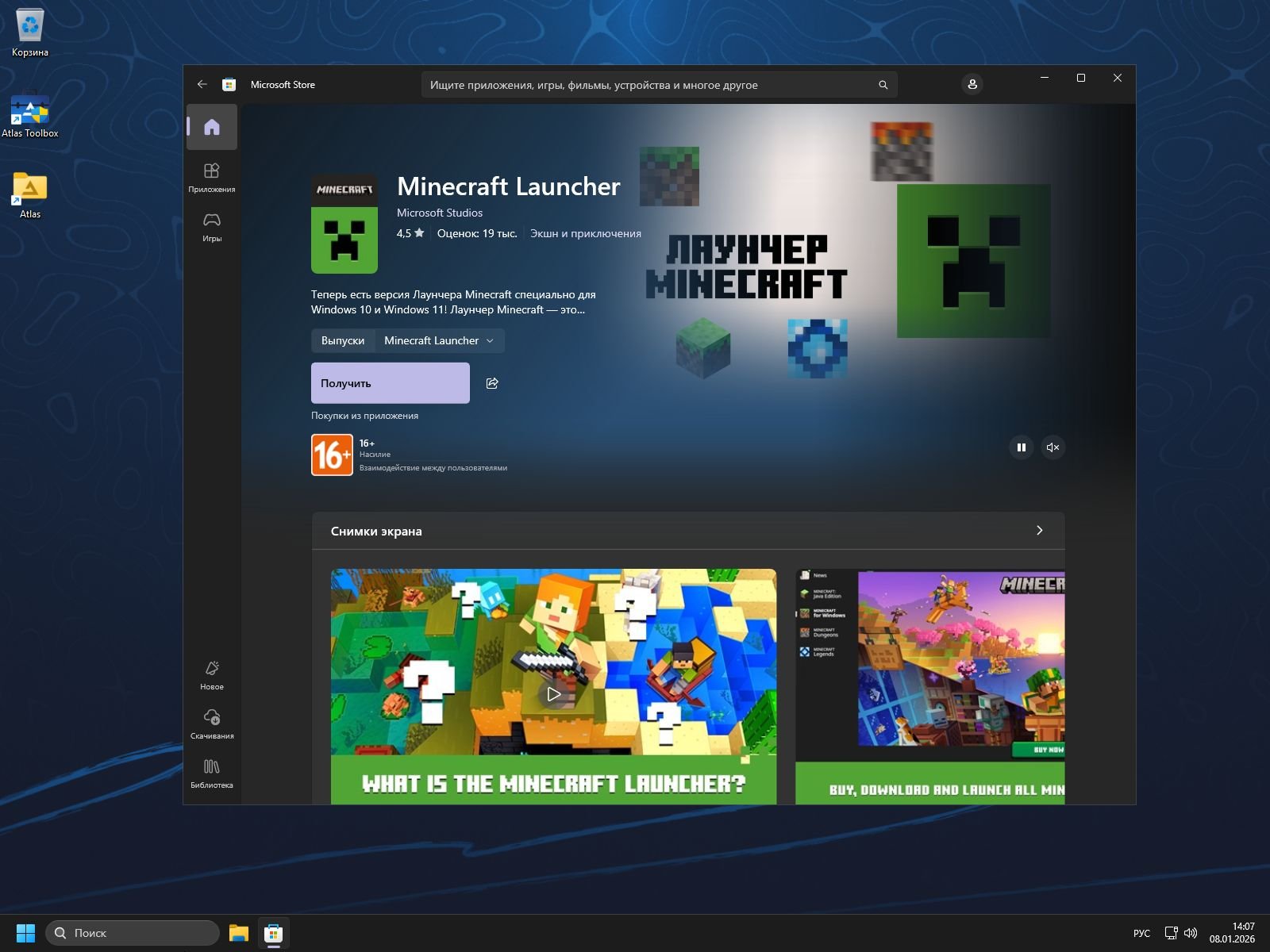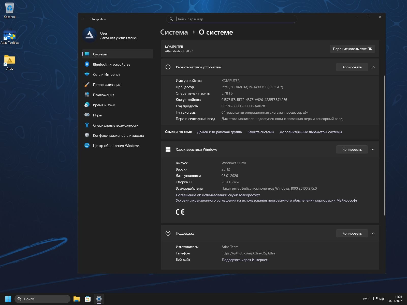 - Версия:26200.7462 - Windows 11 Pro 25H2 x64 - AtlasOS RU